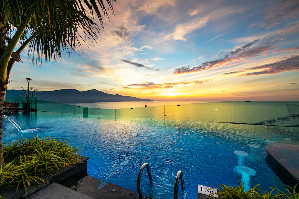 Hồ bơi vô cực khoảnh khắc hoàng hôn